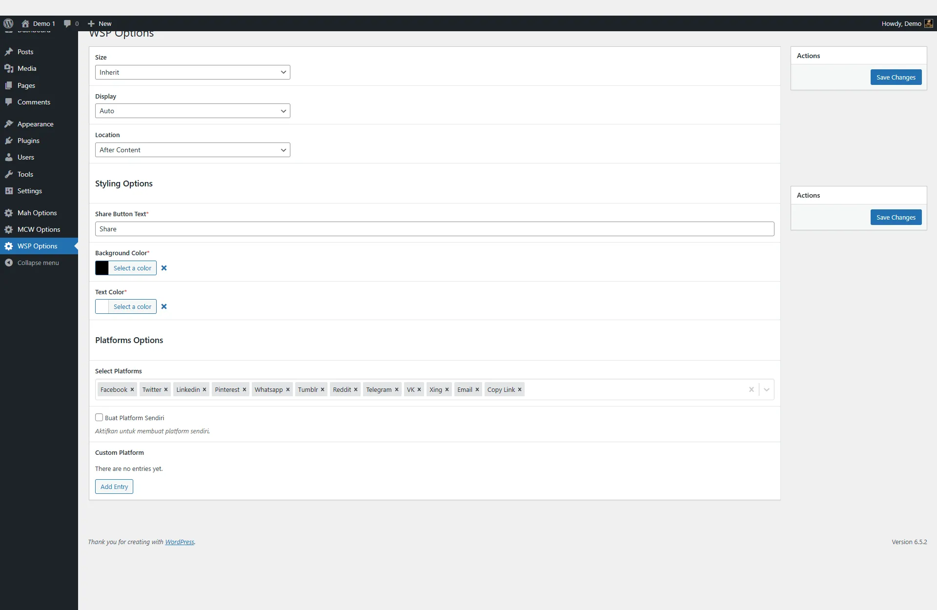 - Pilihan menampilkan tombol share (before, after, both dan shortcode)